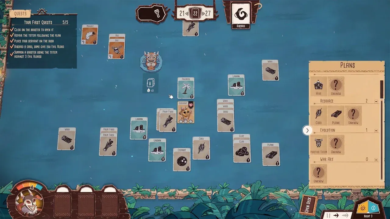 Vydejte se na expedice, abyste objevili nové zdroje a rozšířili své možnosti. Ale buďte opatrní – divočina je plná nebezpečných divokých zvířat. Využijte své schopnosti sestavování balíčků karet a vytvořte perfektní strategii proti svým protivníkům v boji, abyste překonali tyto hrozby a vrátili se vítězně.